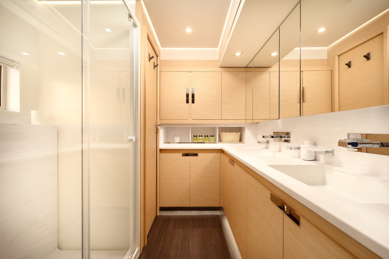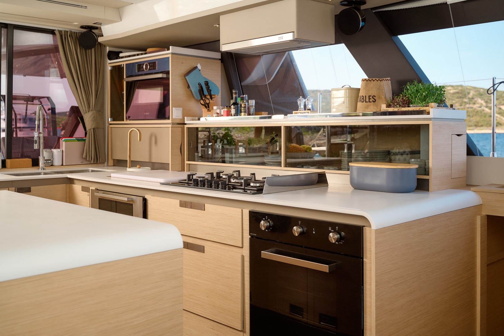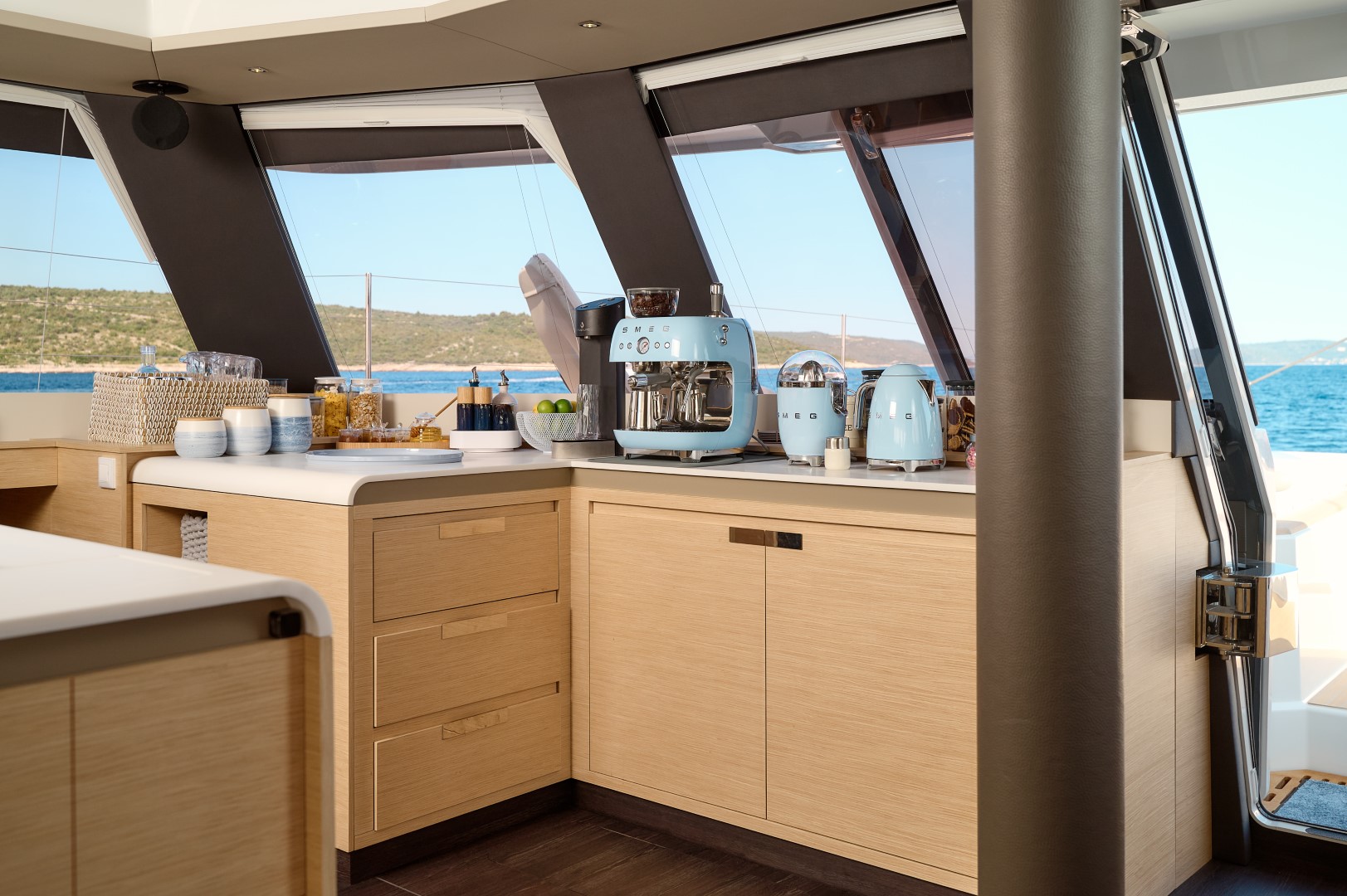 Featuring a 5-cabin layout in the Maestro Version (Galley up), it includes one spacious owner’s suite with a private bathroom, three double guest cabins each with ensuite facilities, and three separate crew cabins.