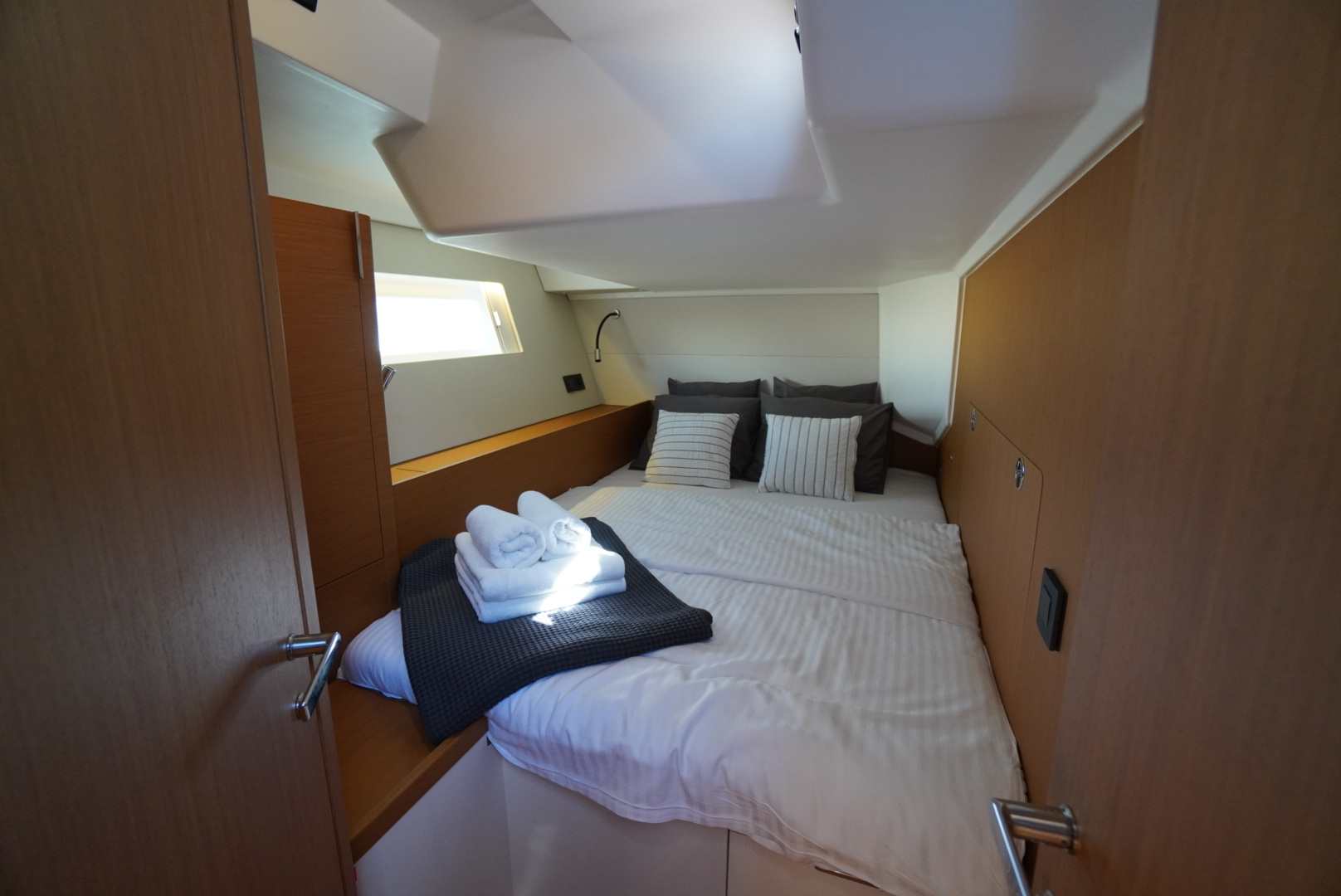 Im Bug befindet sich zusätzlich eine separate Skipperkabine mit eigener Toilette.